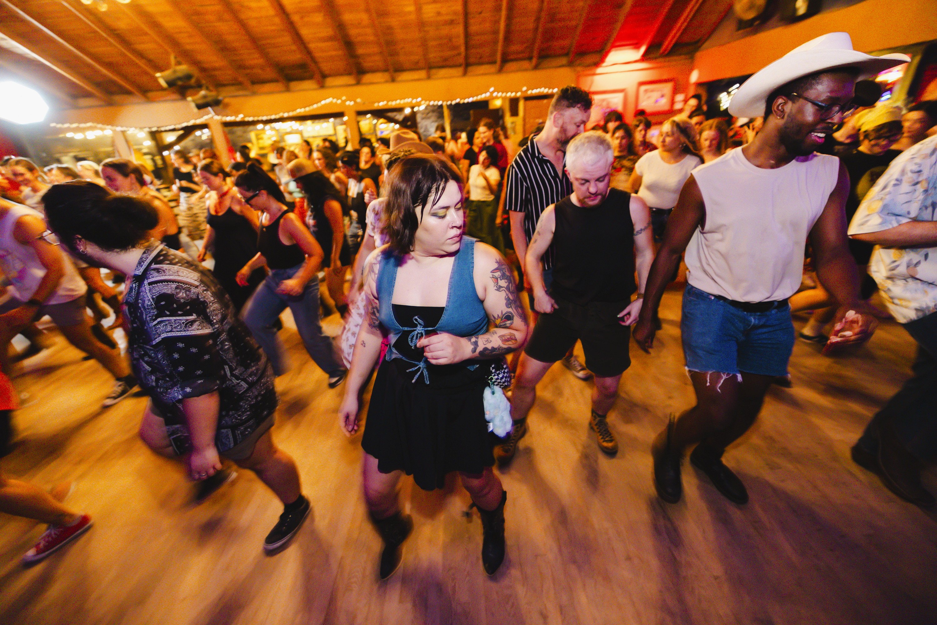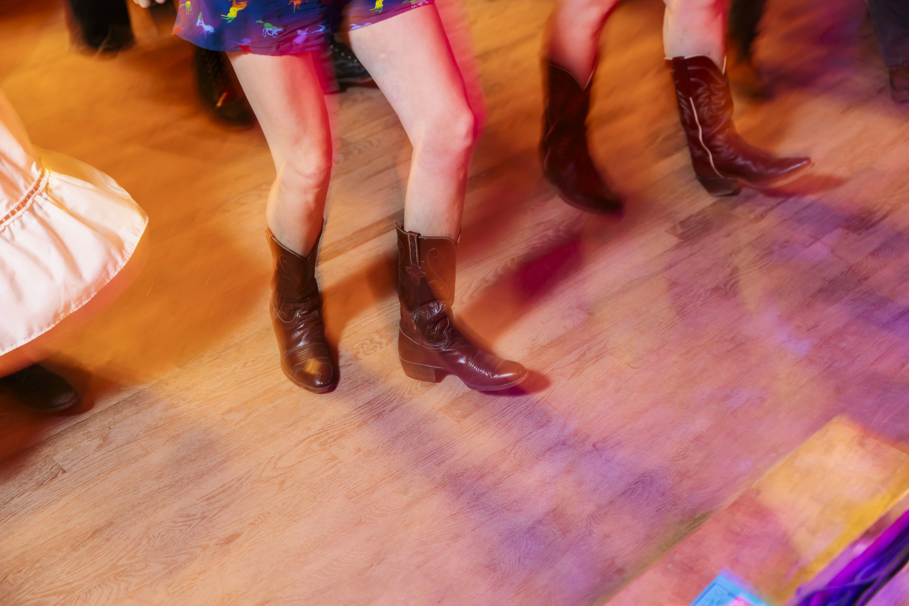 For many Americans, the term “line dance” calls to mind uncles in 10-gallons turning their Tecovas to “Boot Scootin’ Boogie,” or even an awkward scuffle around the high school gym when P.E. class gets rained out. Kicking those tired tropes outta the dance hall is Country Fried Dance, which has been queering the communal dance style across Austin into one that prioritizes joy while still keeping the skill alive.