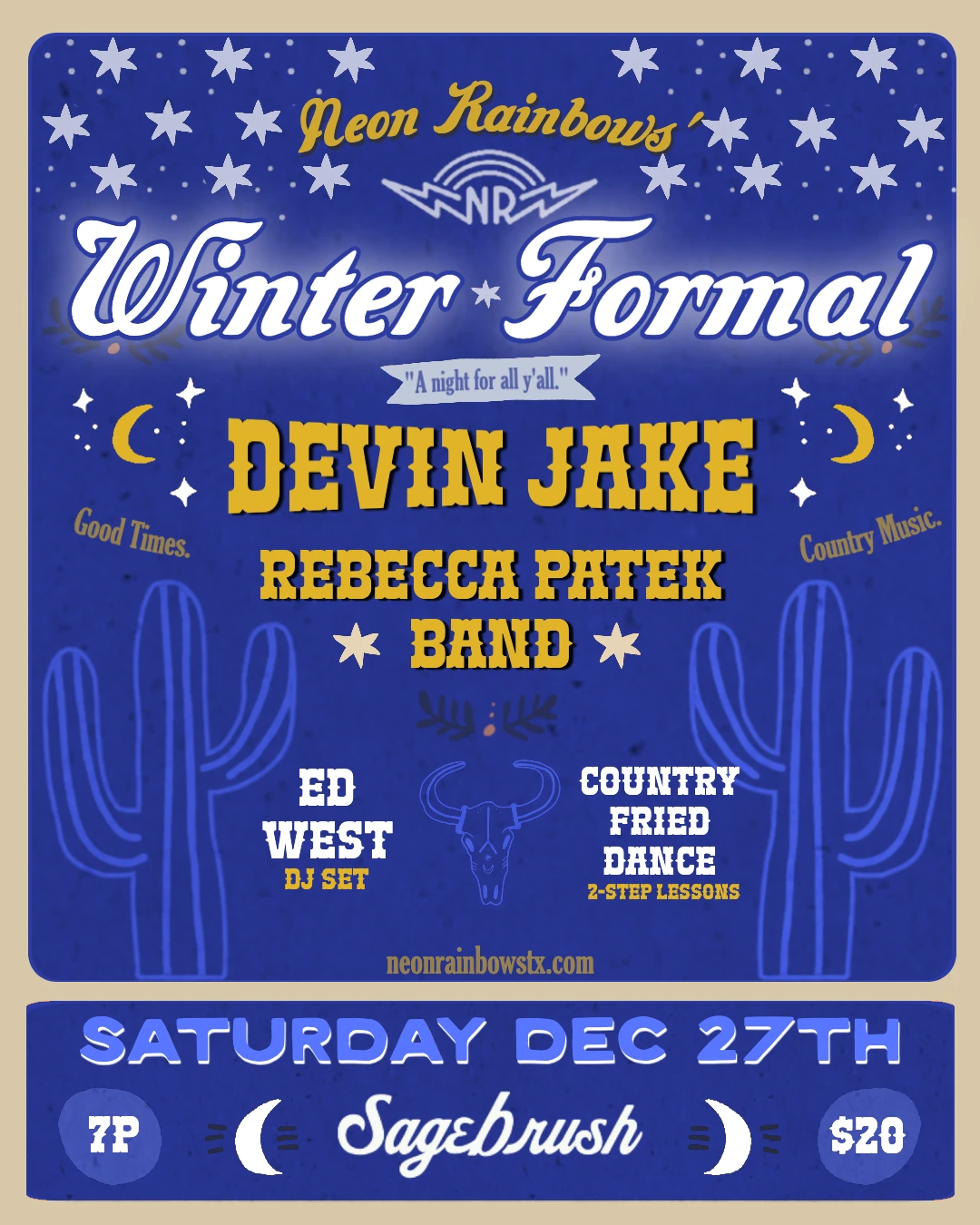 Since July 2023, I’ve been proudly teaching people how to two-step, grapevine, boot-scoot, and most importantly—have a blast. I’ve also built a large community of twirl friends that I’ve helped to organize to help out on some pretty rad projects that launch nationally in 2026!